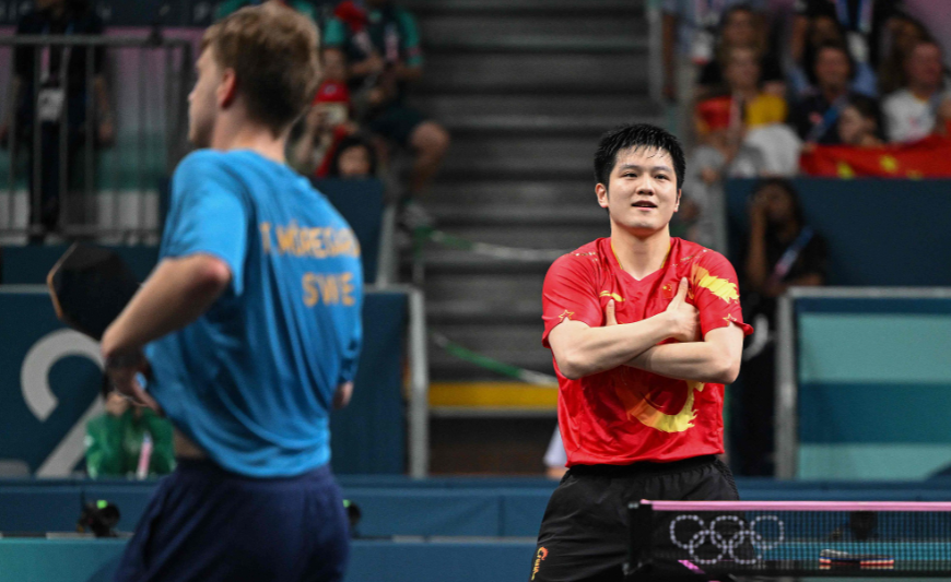 至此,头号种子中国男团就以3个3-2,总比分3-0降服7号种子瑞典队,终止奥运会男团五连冠。