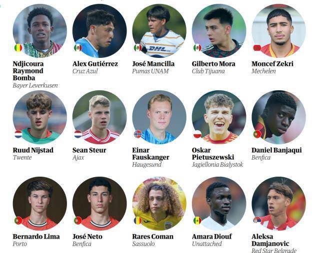 近日,英国《卫报》按照常规评比出了年度60大天才,本年入选的球员均为2008年栽植,包括世青赛上光辉精明的墨西哥天才莫拉、大巴黎的姆巴耶等东说念主,而中国球员魏祥鑫也入选了这份名单。